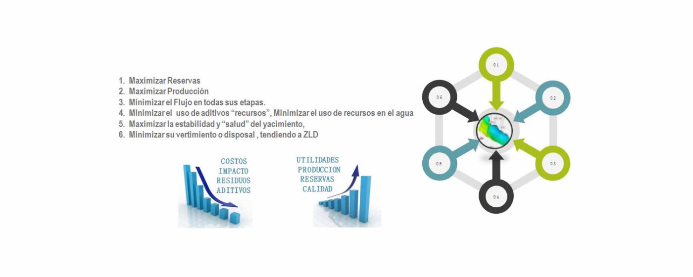 Transformar los fluidos asociados a la producción de Hc’s en un recurso, mediante aplicaciones innovadoras, competitivas y rentables, con el objetivo de incrementar la productividad de los campos petroleros